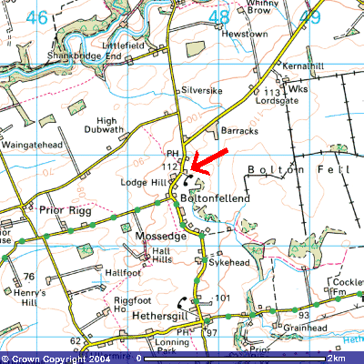 From the East, - Leave the A69 for Brampton (also signed Fish Farm). Travel into Brampton and well through turn right for Longtown. Approx 3 miles - after passing through traffic lights on bridge and then Newtown - turn right to Hethersgill. At Hethersgill crossroads give way and then straight ahead. We are 1 1/10 miles on your right. |